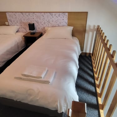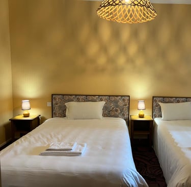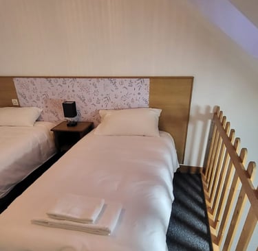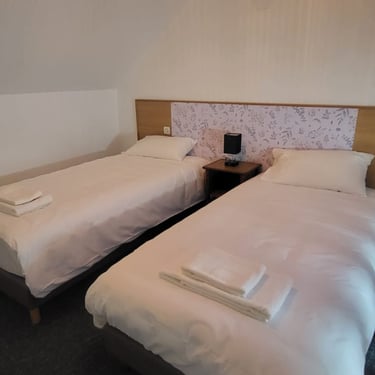 Nos 8 chambres rénovées, pouvant accueillir jusqu'à 21 personnes, complètent parfaitement la location de la salle de réception. Chaque chambre est équipée de douche et de toilette indépendante, offrant confort et intimité à vos invités. Ces chambres sont idéales pour prolonger vos festivités dans un cadre chaleureux et convivial, garantissant à chacun un séjour agréable.